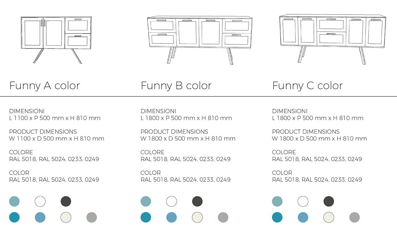 La variante da 180 cm è disponibile con 2 cassetti o 4 cassetti.