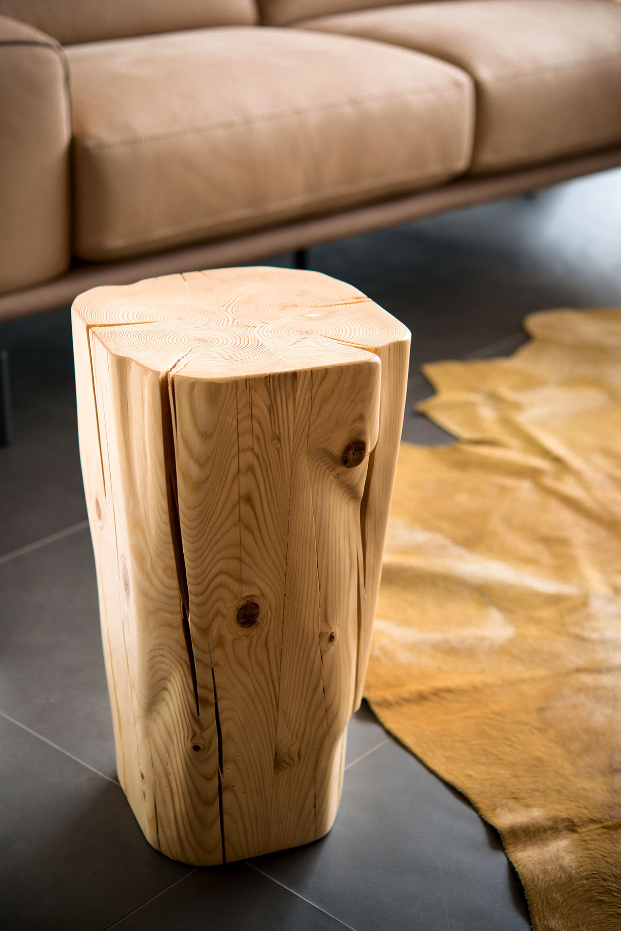 Timber wood seats; completely natural wood furniture and finishing details by hand.